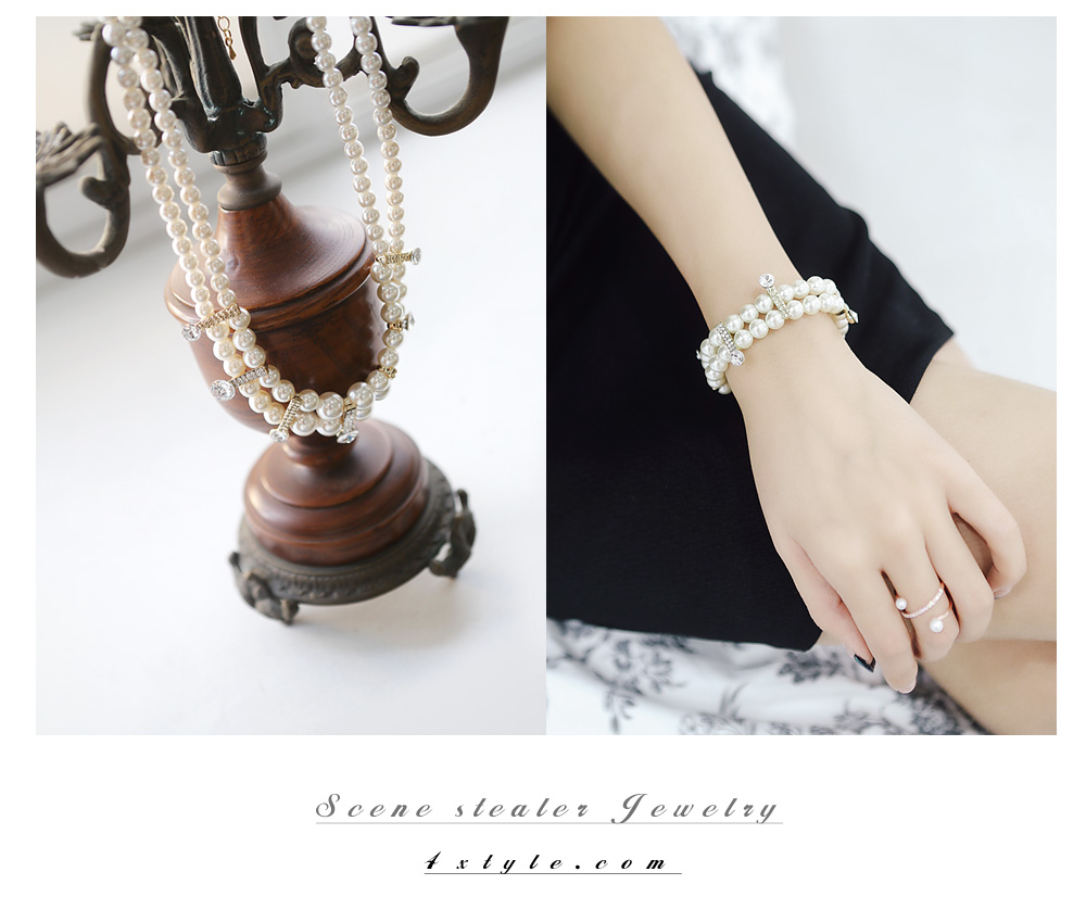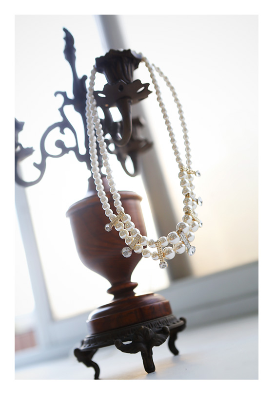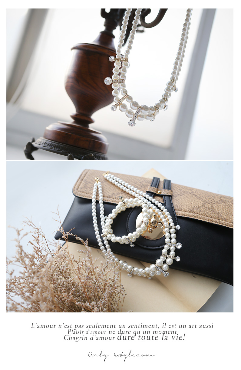 뽀얀진주와 독특한 디자인의 큐빅 장식이 함께한 제품입니다.