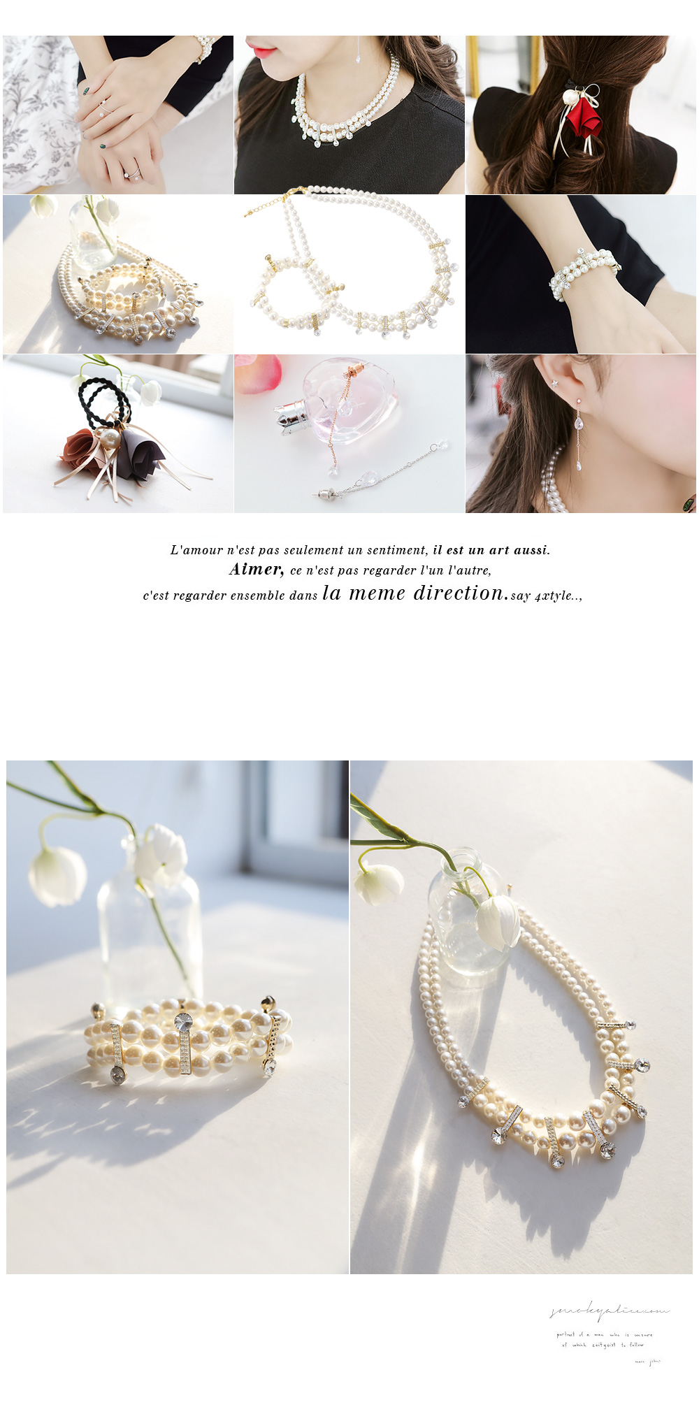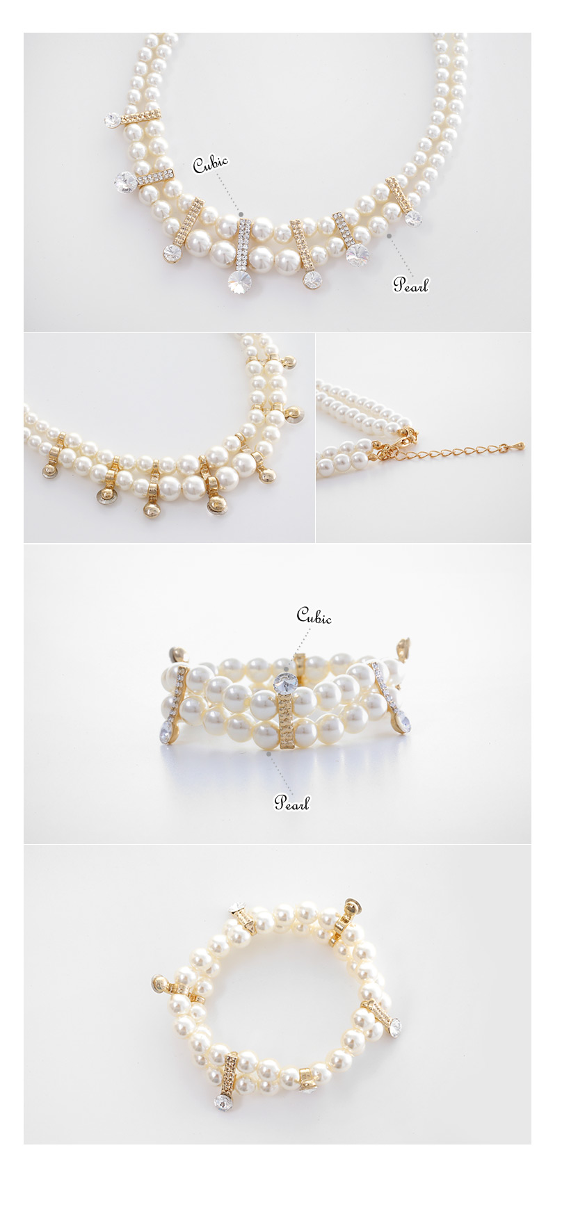 은은하면서 청순한 진주와 유닉크한 디자인의 큐빅이 만나 엘레강스한 분위기를 만들어주는 올리비아 펄 세트입니다. 목걸이와 팔찌 한세트로 구성된 제품으로 페미닌한 진주와 골드 빛 베이스 컬러의 소재가 믹스되어 화려하면서 고급스러운 느낌을 주는 아이템이예요. 우아하고 품격있게 연출하고 싶을때 포인트 악세서리로 제격인 아이예요:)