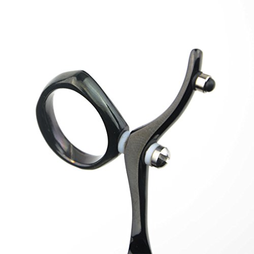 LILYS PET HIGH-END SERIES LEFT-HANDED 6.0" Japanese 440C Stainless Swivel Thumb Ring Shear in Black/Rainbow Titanium (Black)