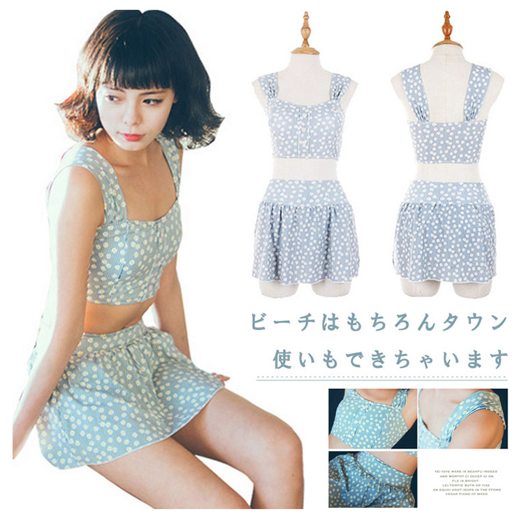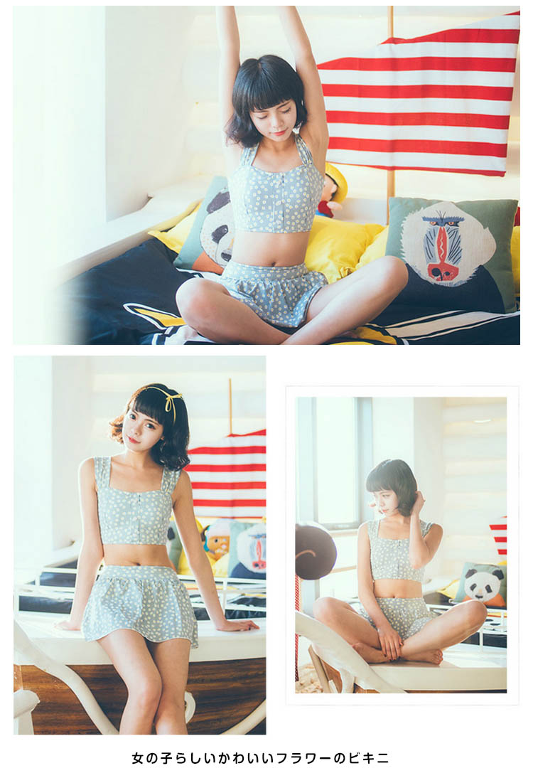 | ビーチはもちろんタウン使いもできちゃいますこれで夏を満喫できること間違いなしですね女の子らしいかわいいフラワーのビキニ上下セットにお揃いのスイムウェアが嬉しい | |