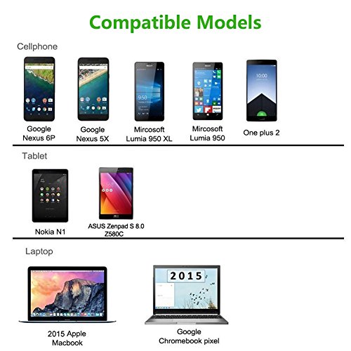 Compatible with New Apple MacBook 12 inch, Samsung Galaxy S8, S8 Plus, LG G5 V20, Nokia N1 Tablet, Google ChromeBook Pixel (2015), one plus 2 , HTC 10, Asus Zen AiO , Google Nexus 5X , Google Nexus 6P, Lumia 950, Lumia 950XL ,etc.