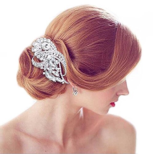 Aukmla Hair Combs Accessories with Bead for Women and Girls (Sliver Style)