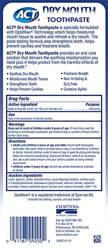 ACT Dry Mouth Anticavity Fluoride Toothpaste, Soothing Mint - 4.6 oz (pack of 2)