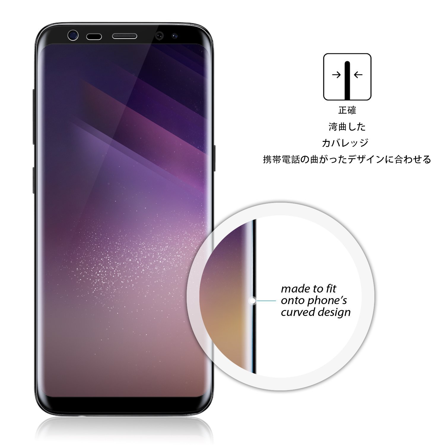By shatterproofing processing, even if the film is damaged by any chance, the glass pieces will not scatter and become stuck, so you can protect the Galaxy S8 well without worry of injury.
