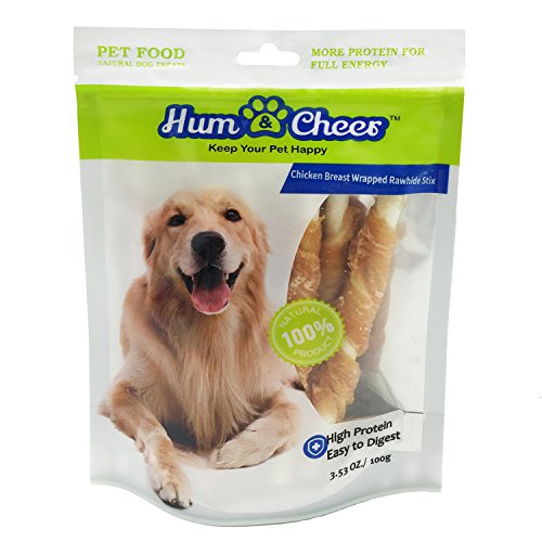 -. Title : Hum & Cheer Premium Dog Treats Chews Chicken Breast Wrapped Rawhide Stix For Training
