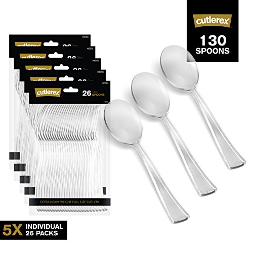 ---SET THE TABLE, SET THE MOOD!--- Throw a bash of an event. CUTLEREX is here to assist you!! Providing the Clear look and feel of stainless steel flatware at a fraction of the cost, CUTLEREX creates plastic silverware that looks real! CUTLEREX Clear plastic cutlery is disposable, so you won't have to waste any extra time washing large quantities of dishes. Despite being designed to throw away, this Clear plastic cutlery features the heavyweight design that is expected of traditional silverware. The sturdy construction helps limit bending, breaking, or snapping. With help from the sleek design along the flatware's handle, you can provide your table setting with some upscale style. The attractive appearance makes it ideal for elegant dining environments such as weddings, parties, and catered events! ---PRODUCT FEATURES--- ★Great for catered weddings, receptions, and parties ★Value Pack 130 Clear Spoons ★Unique, formal alternative to traditional disposable cutlery ★Features a shiny Clear finish ★Heavy weight construction prevents breakage, bending, and snapping ★Elegant sleek handle ★Disposable for quick clean up "These were perfect for a baby shower. I didn't want to rent cutlery, and didn't want to use the white plastic kind either. They are heavy duty, a nice Clear color so they enhanced the table, and they look like real silverware! Beautiful and perfect for the occasion." B. Moore July 12 2017 Wow guests with your contemporary and trendy food presentation. CUTLEREX sleek Clear Spoons are sure to refashion every meal into a stylish occasion. Click on HIGH END PRODUCTS to check out our full line of china-like dishes and cutlery for your upscale celebration. Trust us, You'll be GLAD you did!! The last thing you want is to run out of Spoons at your special affair!!! JUST CLICK ADD TO CART NOW!!!!!! 0
