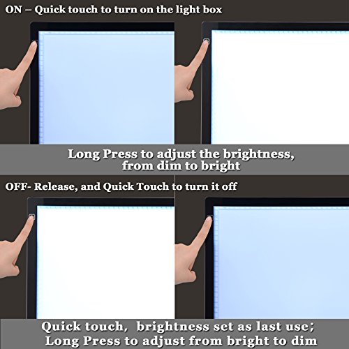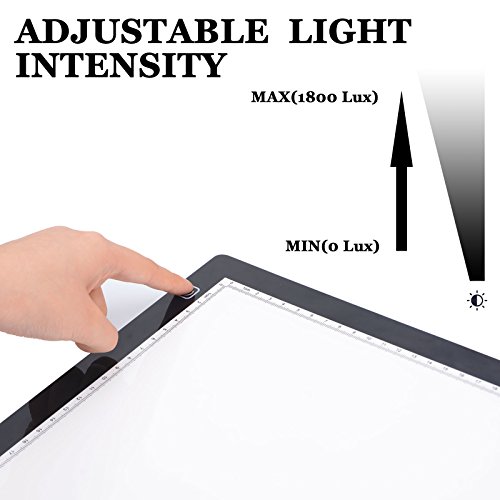 * Ultra slim, easy to carry and store * Easy on/off touch switch * Bright and smooth working surface * Measurement border to scale your work quickly * Dimmable, stepless adjustable brightness (from 0 LUX - 1800 LUX) * Eco-friendly, no harm to eyes and skin * Strong back light yet low consumption, energy saving * Long lifespan is up to 52,000 hours * Suitable for 24-hour lighting * Comply with CE approval * BONUS Complete Accessories Kit: Clamp, Power Adapter and Carry Bag