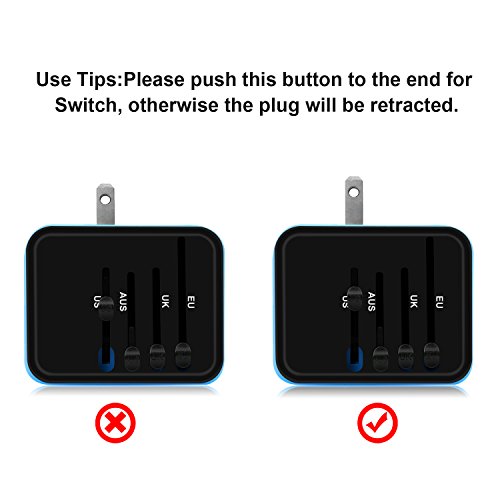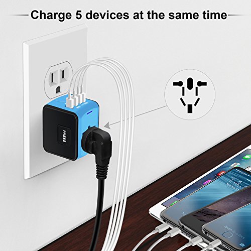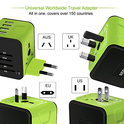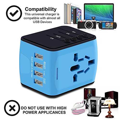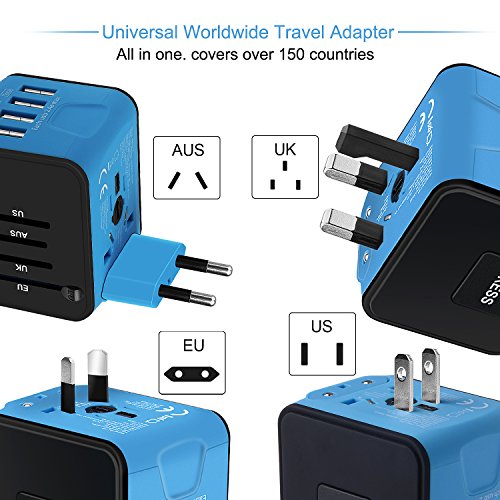 -. Feature : [Universal Travel Adapter]: This Travel Power Adapter covers over 150 countries with US/EU/UK/AU plugs and Powerful 4 USB Ports. It is universal in the USA, Canada, Mexico, Brazil, Central America, South America, China, India, Asia,Europe,the Middle East and so on. / [Certified Safety Power Adapter]: This small travel adapter passed FCC, CE and RoHS, Built-in safey shutters protect users from the direct touch of the live parts on the socket outlet. / [Universal 4 USB Ports]: This travel plug adapter is compatible with almost all USB Devices like Apple iPhone X/8 plus/7 plus/6S/SE, Samsung Galaxy S8/S7, HTC, LG, HUAWEI honor,Bluetooth Speaker/Headphone, Digital Cameras etc. / [Charge 5 Devices]: All in one international travel adapter, power up very fast with this charger adapter, you can charge your phone,laptop,bluetooth speaker and other 2 USB devices at the same time. Portable & easy to use. / [Lifetime Warranty]: Please enjoy our unlimited lifetime warranty and friendly customer service. 24/7 email support for your peace of mind