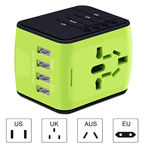 -. Title : Travel Adapter, International Power Adapter with 4 USB Charger Universal for UK,US,AU,CA,India,Europe Over 150 Countries All In One Travel Adapter Plug for iPhone, Android,All USB Devices