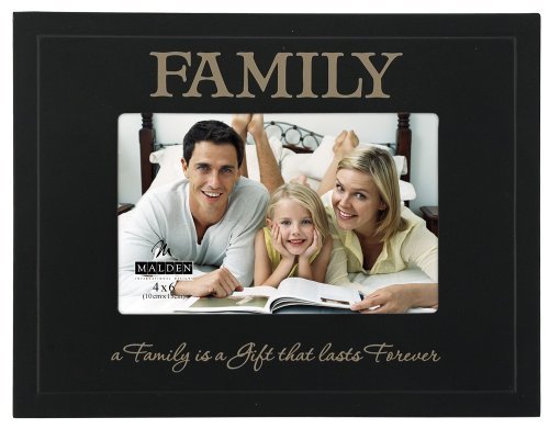 -. Binding : Misc. -. Brand : Malden International Designs -. Color : Black -. EAN : 0789322729447 -. Feature : Holds one 4x6 Photo / A family is a gift that lasts forever / Easel back for tabletop display / Wipes Clean -. IsAutographed : 0 -. Label : Malden International Designs -. Manufacturer : Malden International Designs -. Model : 4380-46 -. MPN : 4380-46 -. NumberOfItems : 1 -. PackageQuantity : 1 -. PartNumber : 4380-46 -. ProductGroup : Home -. ProductTypeName : HOME -. Publisher : Malden International Designs -. Size : 8 1/2 x 6 1/2 -. Studio : Malden International Designs -. Title : Malden International Designs Sentiments Family Great Woods Double Layer Picture Frame, 4x6, Black -. UPC : 096287987554