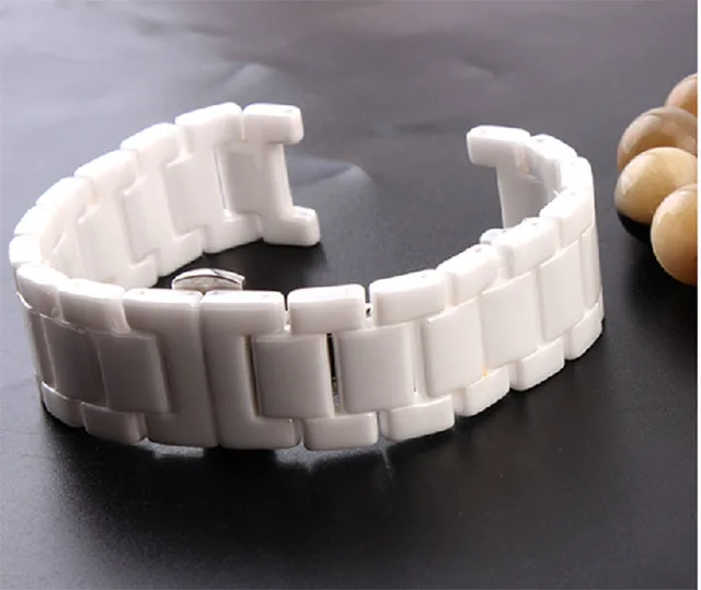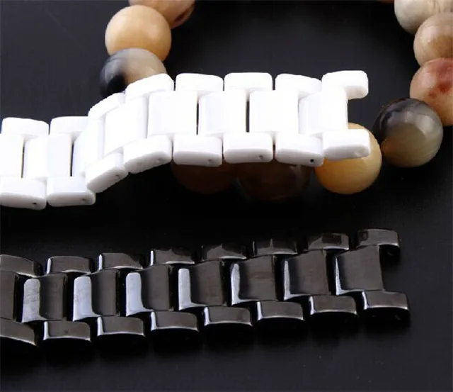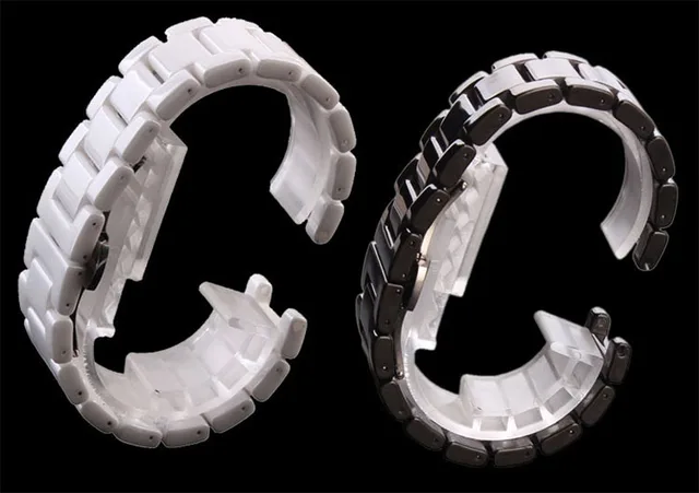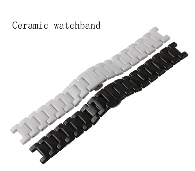 | [해외]손목 시계 세라믹 블랙 화이트 시계 팔찌 밴드 20 미리메터 스트랩 오목 인터페이스 솔리드 링크 나비 버클 무료 배송 |