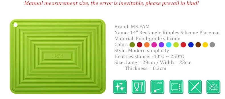 Name:14 Inch Rectangle Ripples Silicone Placemat