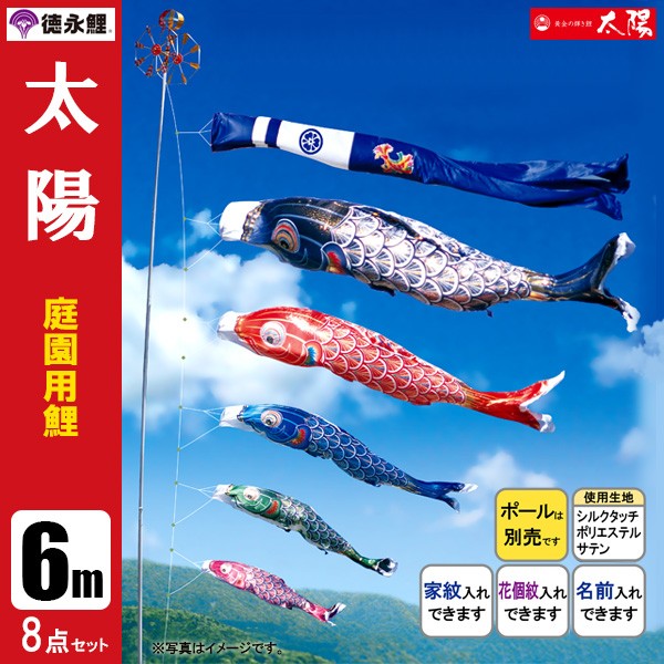 | 太陽 鯉 庭園用大型鯉のぼり ポール別売り | 3m鯉3匹 3m鯉4匹 3m鯉5匹 | 4m鯉3匹 4m鯉4匹 4m鯉5匹 | 5m鯉3匹 5m鯉4匹 5m鯉5匹 | 6m鯉3匹 6m鯉4匹 6m鯉5匹 |