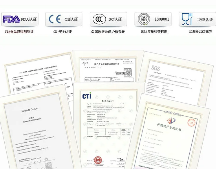 Certification:CE / EU,LFGB,FDA