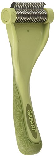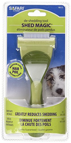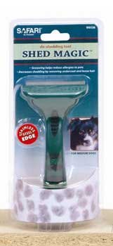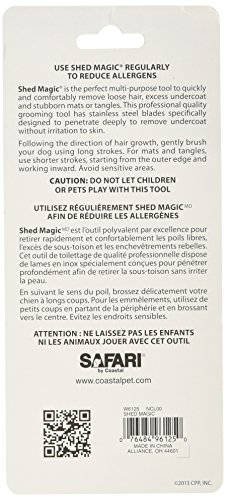 Studio : TopDawg Pet Supply Publisher : TopDawg Pet Supply Binding : Misc. Product Description Safari Pet Shed Magic deshedder greatly reduces shedding for a healthy coat and home. It is the perfect multi purpose tool to quickly remove loose hair, excess undercoat and stubborn mats or tangles. This professional quality grooming tool has stainless steel blades that are designed to easily remove dead hair. It works great on medium and long coats because it penetrates to remove undercoat without irritating the skin. Featured with a comfortable, textured grip handle. It not only works as a deshedding tool, but can also be used as a dematting tool. Available in small size. 0