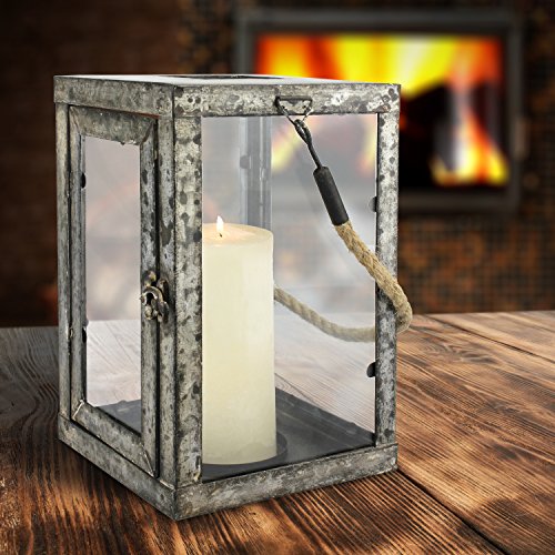 -. Feature : Holds one 3" pillar candle / Complete with rope hanger / Rustic White Finish / Latitudes Collection / Brought to you by the Stonebriar Collection