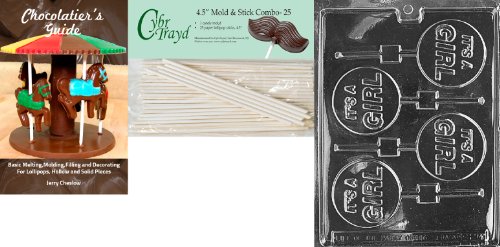 Cybrtrayd 'It's a Girl Lolly' Baby Chocolate Candy Mold with 25 4.5-Inch Lollipop Sticks and Chocolatier's Guide