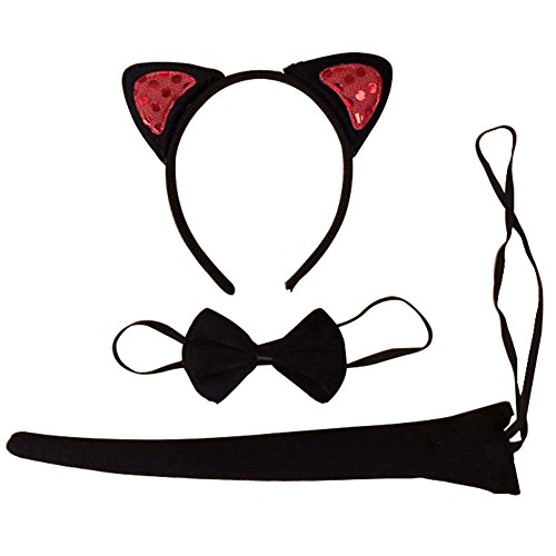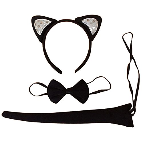 3pcs cosplay costume set: 1 x Cat Ears Headband, 1 x Bow Tie, 1 x Tail.