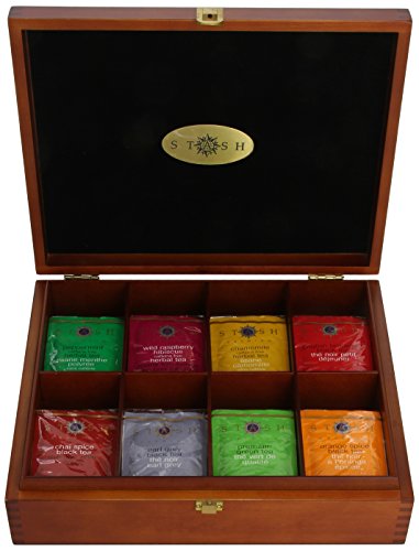 -. Title : Stash Tea 8 Flavor Variety Pack Gift Set, 80 Count Tea Bags in Foil with Tea Chest