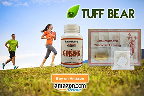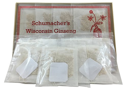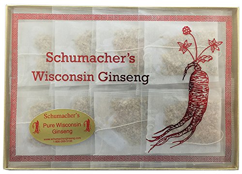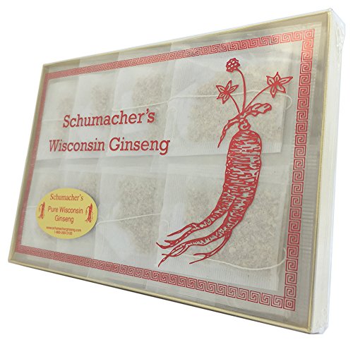 -. Binding : Misc. -. Brand : Schumacher Ginseng -. EAN : 0793283800589 -. Feature : SALE! Save 3% when you buy 2 boxes. Save 6% when you buy 3 boxes. Save 9% when you buy 4 boxes. Save 10% when you buy 5 boxes. (Promotion will be applied after you click "Proceed to checkout" on the cart page) / BUY RISK FREE: Buy Risk Free from TUFF BEAR - If you are not 100% Satisfied we'll give you a refund. Made in the USA to meet or exceed standards for quality, purity and potency. / SCHUMACHER GINSENG TEA: American Ginseng Tea is made from 100% Premium American Wisconsin Ginseng Roots. This American Ginseng Tea package comes with 20 Tea Bags with a net weight of 2g per bag. Each tea bag has a string and tab for easy use. Each tea bag is sealed airtight for freshness. The herb's most active constituent Ginsenosides was found in our ginseng roots during our periodic testing at 7% Ginsenosides. / NATURAL GROUND GINSENG ROOT TEA: This tea is an all natural ground American Wisconsin Ginseng root. It grows in the ground, harvested, dried and ground for tea. It's not for taste. This all natural ginseng tea that has No sweeteners and No additives. It's known to be one of the BEST natural herbs with a natural earthy taste. Natural Flavor • No Sugar • No Caffeine • No Preservatives / POTENT HERBAL GINSENG ROOT TEA: American Wisconsin Ginseng Tea is known as a potent natural herbal tea. American Ginseng Tea helps with anxiety, stress, energy, fatigue, libido and health. Full effects may be realized after continued consistent use. Wisconsin American ginseng is a well-studied herb with a long track record of safety as a cognitive health supporter. -. IsAdultProduct : 0 -. Label : Schumacher Ginseng -. Manufacturer : Schumacher Ginseng -. PackageQuantity : 1 -. ProductGroup : Grocery -. ProductTypeName : GROCERY -. Publisher : Schumacher Ginseng -. Studio : Schumacher Ginseng -. Title : American Ginseng Tea, 100% Pure Wisconsin Ginseng roots - BEST Herbal Tea made from Wisconsin Ginseng roots. Tea helps with Anxiety, Stress, Energy, Fatigue, Libido, Health. by Schumacher Ginseng -. UPC : 793283800589