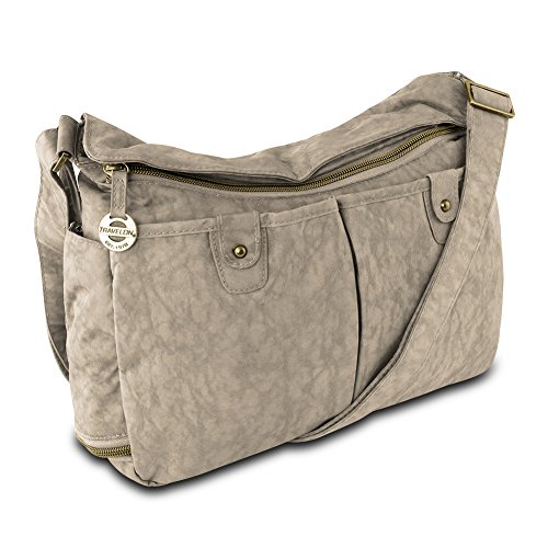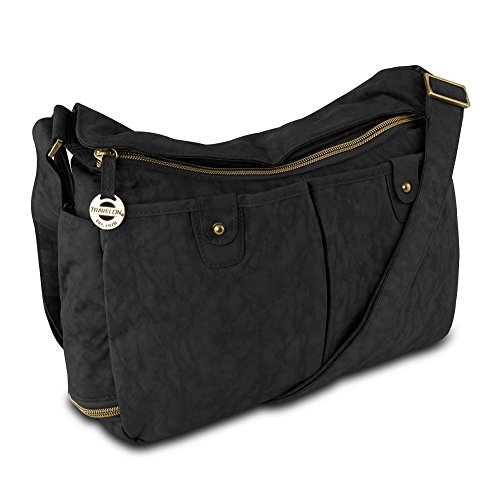 Carry everything you need while staying organized with the Travelon East/West Shoulder Bag w/ RFID Protection. Ideal for use while running weekend errands or going on family vacation, the bag features plenty of space with two front pockets, a spacious main compartment with 5 built-in card slots and a passport pocket, plus a rear zippered pocket for even more storage space. Plus, the bag even provides you with much needed personal protection thanks to RFID-blocking technology built right into the card slots and passport pocket. The bag can easily be worn as either a crossbody or shoulder bag, and even includes an expandable side pocket large enough to hold a water bottle or your umbrella.Feature