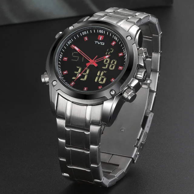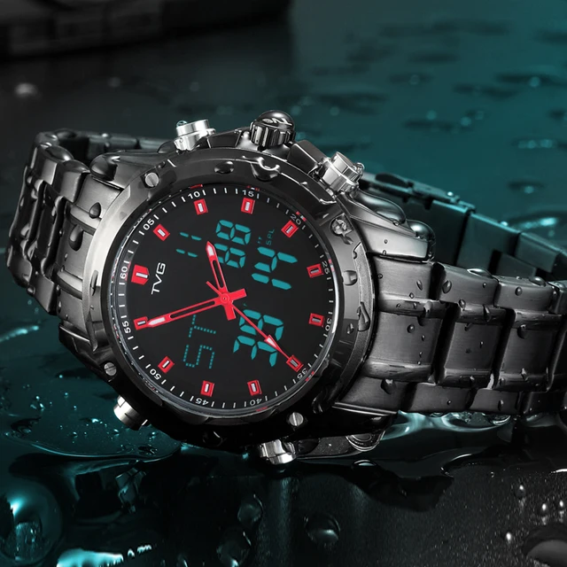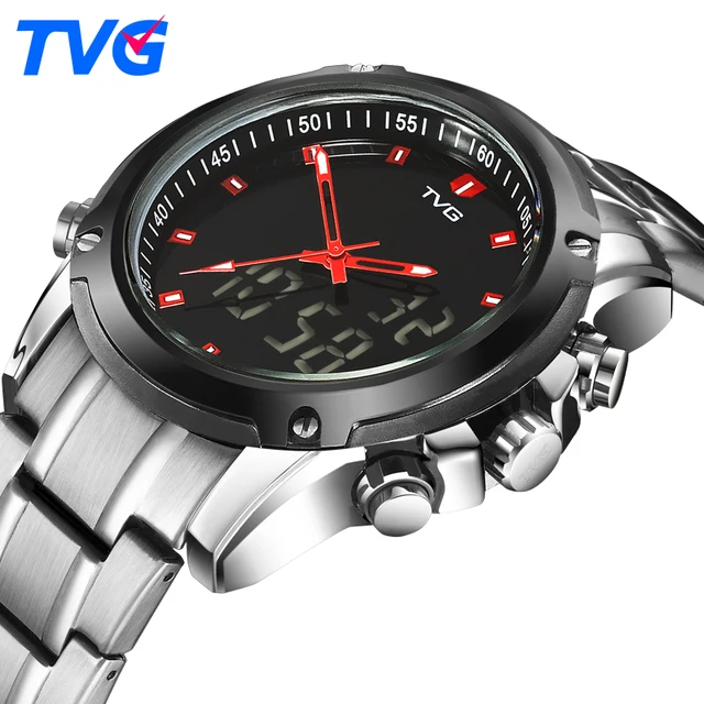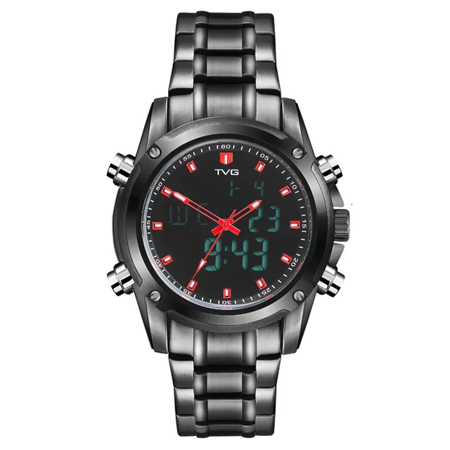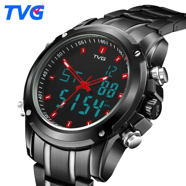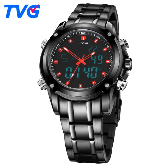 | [해외] TVG 고급 최고 브랜드 남성 시계 군사 석영 스포츠 시계 남성 방수 LED 디지털 전체 스틸 시계 Relogio Masculino |