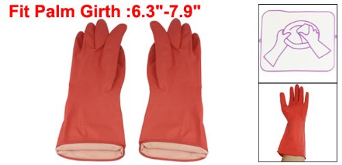 - Feature : Product Name : Clean Latex Gloves;Color : Red / Material : Latex Rubber;Fit Palm Girth : 16-20cm/6.3"-7.9" / Wrist Open Width : 23cm/9.1";Flat Size : 30 x 11.5cm/11.8" x 4.5"(L*W) / Net Weight : 78g / Package Contents : 1 Pair x Clean Latex Gloves