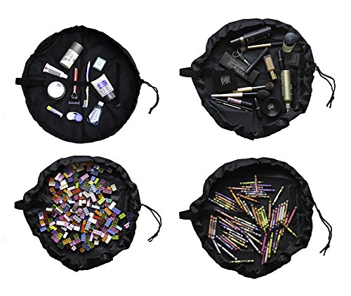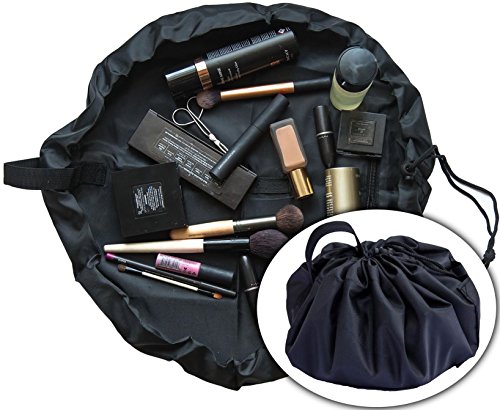 -. Brand : ModFamily -. ClothingSize : One Size -. Color : Black -. Department : mens -. EAN : 6527853387170 -. Feature : INSTANTLY SEE EVERYTHING: Opened tote bag lays flat for visibility of all toiletry items / HASSLE-FREE CLEANING: Toss Stash It in the washing machine or wipe ditty bag off in a jiff / EASILY ADJUSTS from a flat mat to a portable tote: 21 inch diameter and specially-designed lip to prevent items from rolling off mat / DURABLE 100% THICK POLYESTER FABRIC that won't rip or tear / OUSTANDING CONVENIENCE with an inside zipper pocket to stash loose valuables, stretchable bungee to secure items and velcro pouch to hold the drawstring -. ProductGroup : Apparel -. ProductTypeName : LAGE -. Size : One Size -. Title : ModFamily Toiletry and Cosmetic Cinch Bag, opens flat so you can find it all