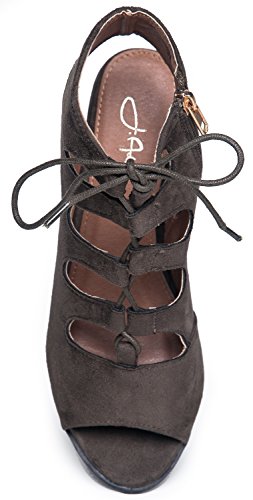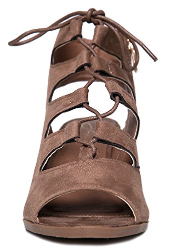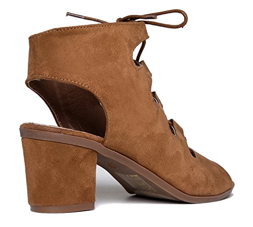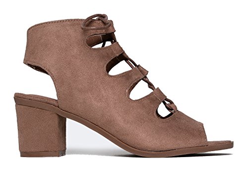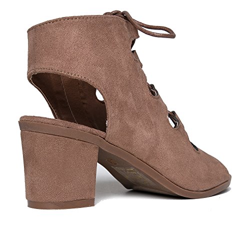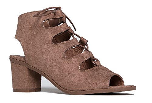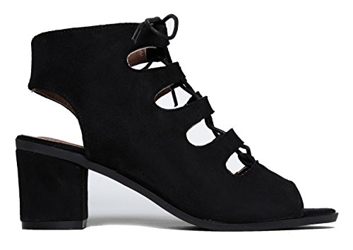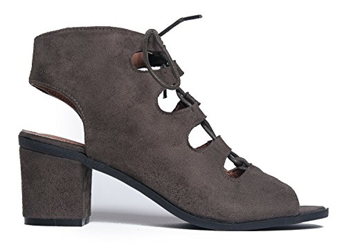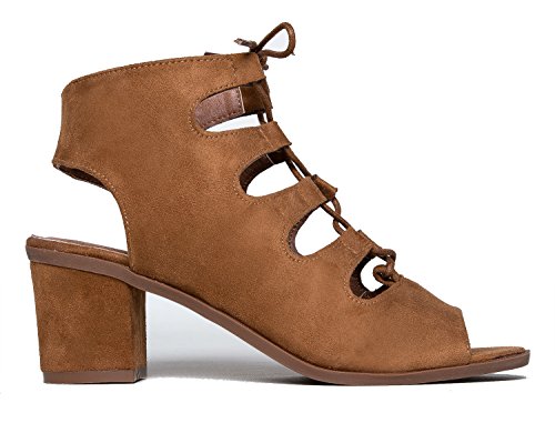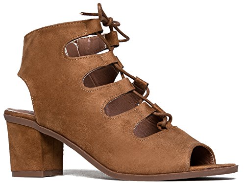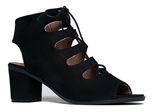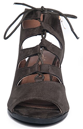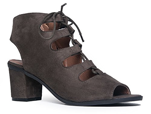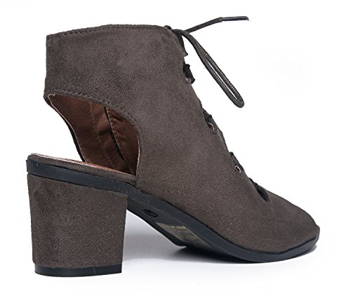 Gladiator lace up Low Heel Bootie - Chunky Block Ankle Boot - Trendy Tie Up Sandal - Twirl by J...