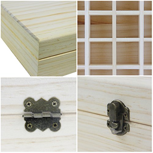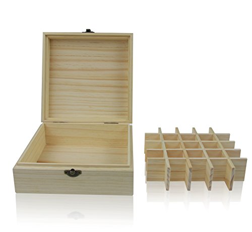 - ►100% NATURAL PINE WOOD. Most essential oils storage box on Amazon were made from plywood, but this essential oil case is made of 100% unfinished Natural Pine Wood, even if the grids. This essential oil wooden box is nice and sturdy and craftsmanship is wonderful. The wood carrying case is perfect for your personal beauty care fragrance aromatherapy oils.