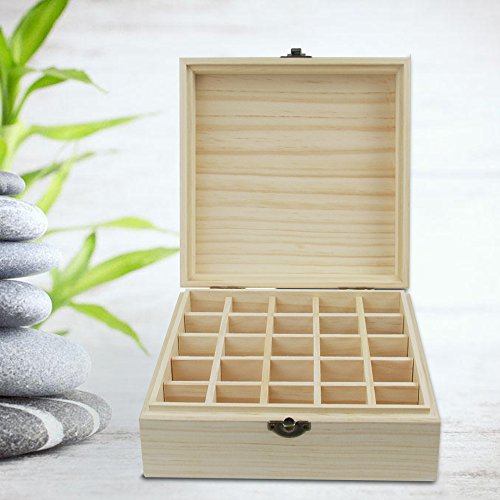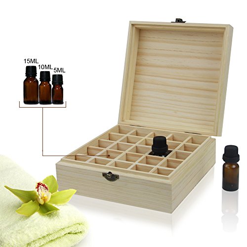 Wood Essential Oils Box, Essential Oil Wooden Storage Case 100% Natural Pine Wood Holds 5/10/15ml 25 Bottles Carrying Organizer For Aromatherapy young living doTERRA Radha Beauty essential oils
