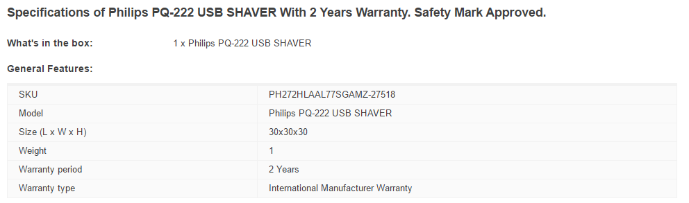 Introducing the amazing Philips PQ-222 USB SHAVER. This product will give you the maximum value out of its extremely advanced and useful features. This product has an amazing futuristic design and it is made out of only the finest material to ensure top grade quality. This product is easy to operate and it require less space for storage purposes. Get it now while the stock last!