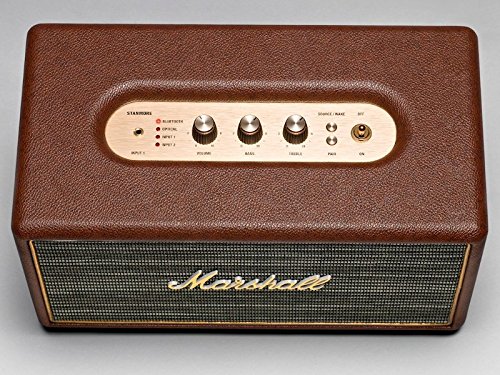 Compact yet packing plenty of audio punch, the Marshall Stanmore speaker wirelessly powers the music on your iPhone, iPad, or iPod touch with Marshall's heritage of big stage performance. Stanmore's classic design is a throwback to the golden days of rock and roll, featuring analog interaction knobs that give you custom control of your music. Its vintage-looking front fret, brass details, and iconic script logo make the Stanmore right at home with the rest of your Marshall collection. Connect it wirelessly via Bluetooth, use the RCA input to plug in your record player, or simply connect your iOS device to the 3.5 mm auxiliary port using the included coil cord. Stanmore is even compatible with Apple TV and other devices that have an optical output.Feature