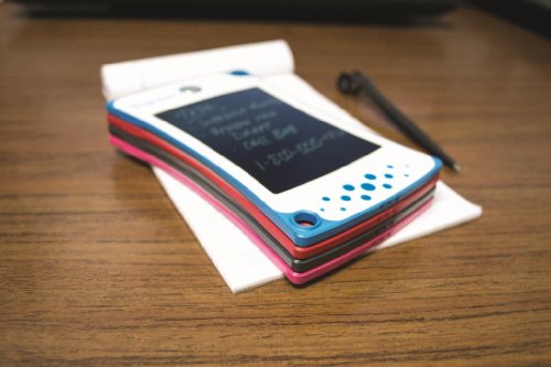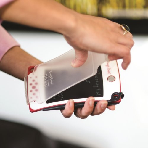 Feature : Compact, lightweight design fits easily in a purse or pocket / Tapered stylus attaches securely to case / Unique stackable design for easy use and storage / Thumbtack holes for hanging notes on a pegboard (or similar surface) / Plastic removable cover protects writing surface from unwanted screen marks