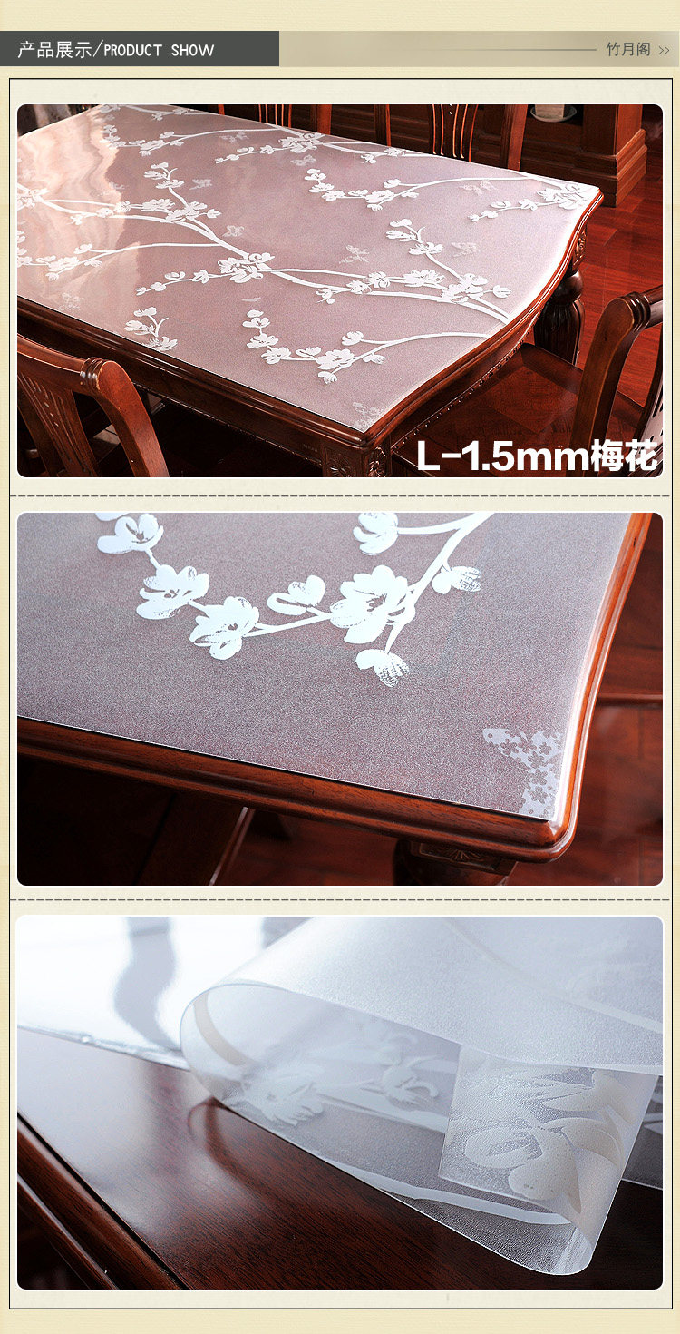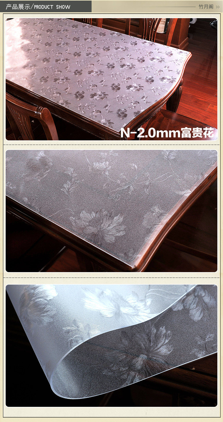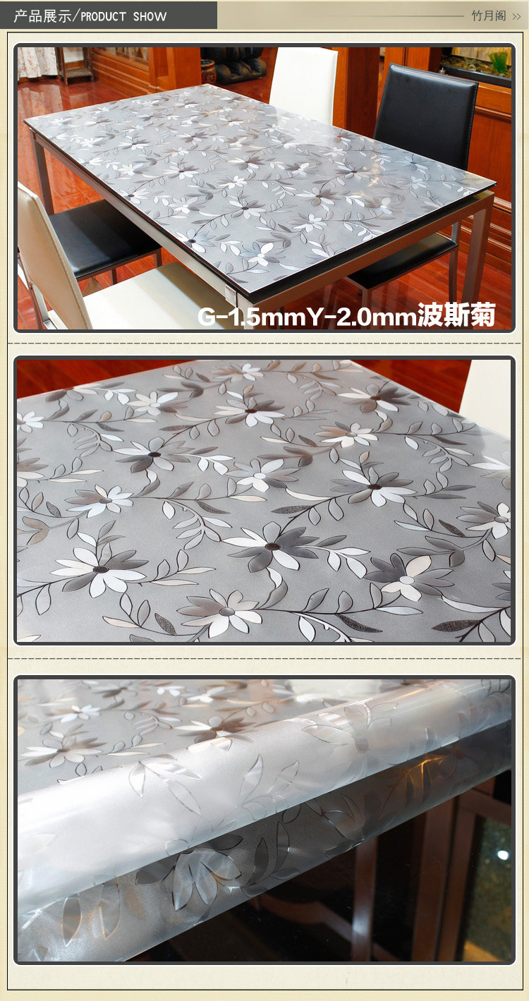 竹月阁PVC餐桌布防水软质玻璃塑料台布桌垫茶几垫透明磨砂水晶板? ?竹月阁PVC餐桌布防水软质玻璃塑料台布桌垫茶几垫透明磨砂水晶板