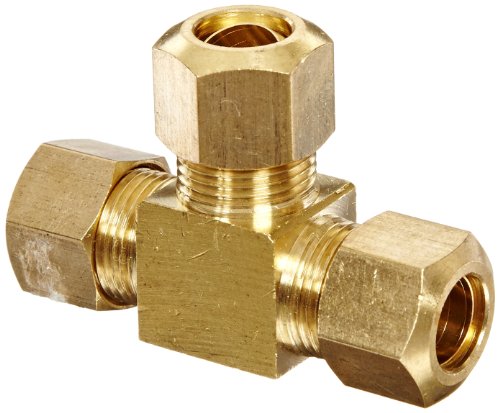 Anderson Metals 50064 Brass Compression Tube Fitting, Tee, 3/8" x 3/8" x 3/8" Tube OD