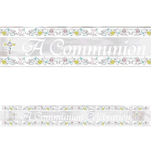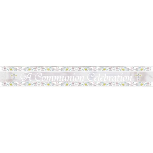 Product Description Celebrate any religious occasion with elegance when you decor the place with our Religious Scroll Communion 5-Yard Metallic Banner. 0