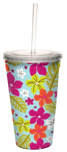 Tree-Free Greetings cc33504 Playful Hibiscus Flowers by Carolyn Gavin Artful Traveler Double-Walled Cool Cup with Reusable Straw, 16-Ounce