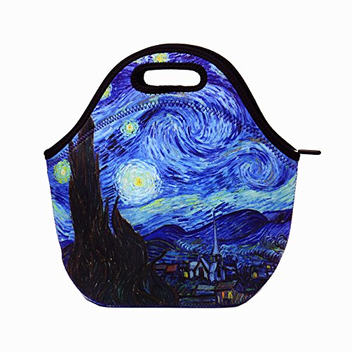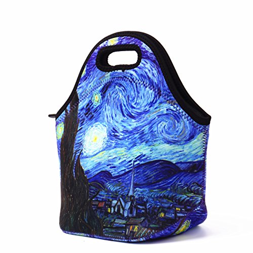 ECO Store Neoprene Lunch Bag - Artistic Designs with Van Gogh / Claude Monet Oil Paintings (Starry Night / Irises / Water Lilies / The Iris Garden at Giverny) (Starry Night)