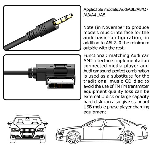 -. Title : Tabiger Portable Music Interface AMI MMI AUX Adapter Cable 3.5mm Jack Aux-IN MP3 Cable for Audi A3/A4/A5/A6/A8/Q5/Q7/R8/TT,vw Jetta GTI GLI Jetta Passat Cc Tiguan Touareg EOS Golf Mk 6, etc.