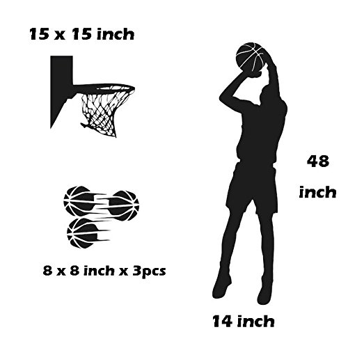 Picture for reference only. Size: human(14"x48")--basketry(15"x15")--basketballs(8"x8"x3pcs). Easy to apply - just use transfer tape!