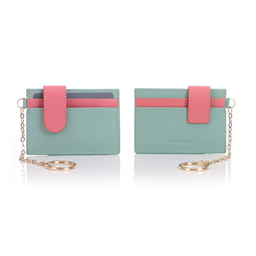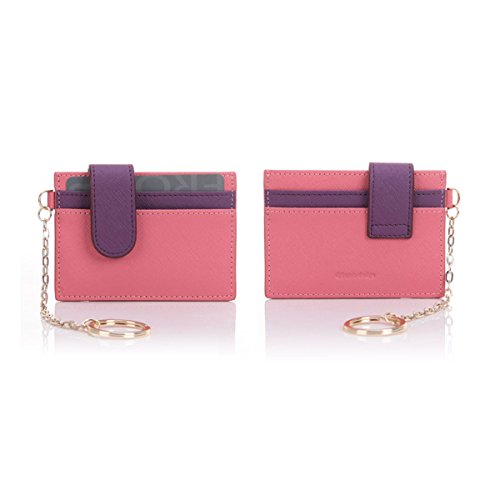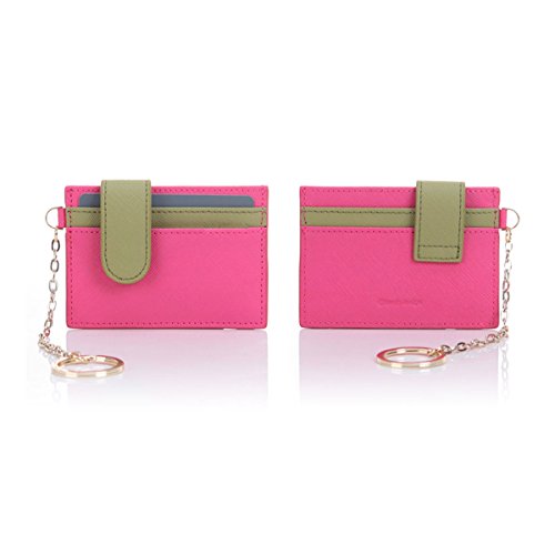 Twin Slim Genuine Leather Card Wallet Useful Credit Card Wallets Key Holder Small Purse (Hot Pink)