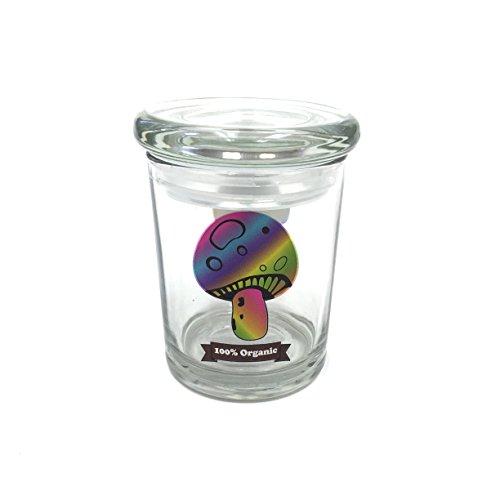 Multicolor Mushroom Pop Top Jar Glass Medical Jar Herb Storage Container (6oz Jar)