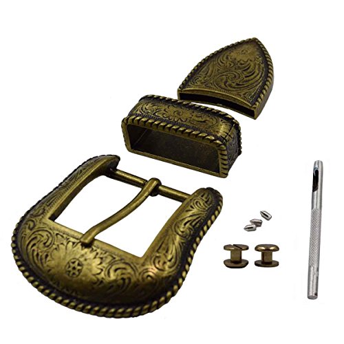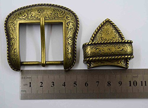 TOME 1-1/2" Western Antique Bronze Engraved Mens Belt Buckle Set Fashion Cowboy Buckle WIDE 38MM (Antique Bronze)