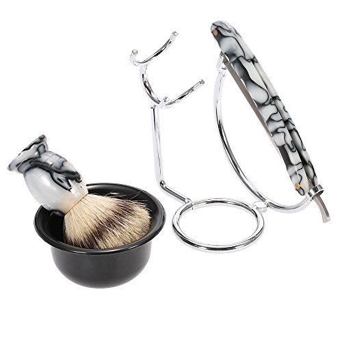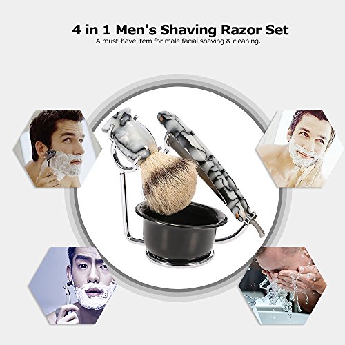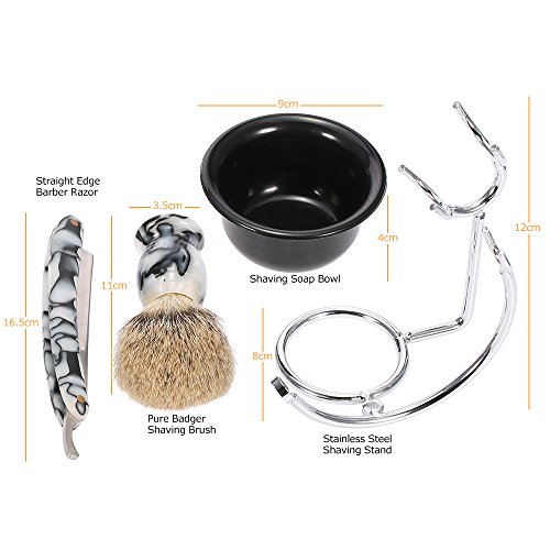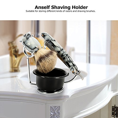 Anself 4 in 1 Men's Shaving Set Pure Badger Shaving Brush + Stainless Steel Shaving Stand + Shaving Soap Bowl + Razor