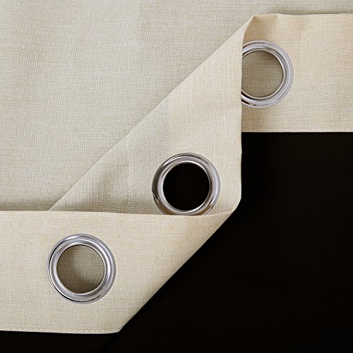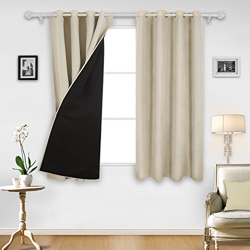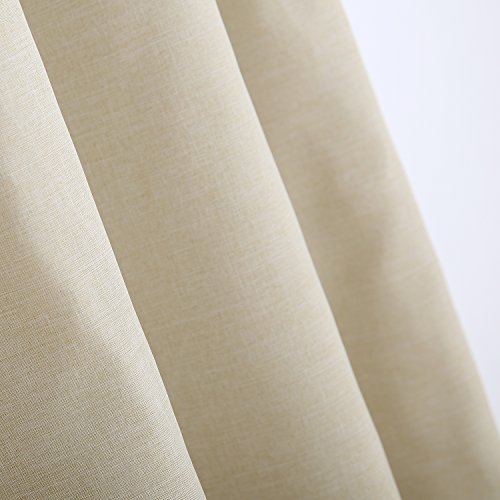 Deconovo Faux Linen Blackout Curtain Panels with Black Lining Back Layer Thermal Insulated and Energy Efficiency Blackout 2 Panels for Living Room 52x63 Inch Beige