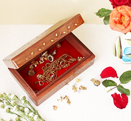 Valentine Day Gifts Hand Carved Wooden Keepsake Decorative Jewelry Trinket Box Storage Organizer with Floral Patterns for Girls Women (Design 6)