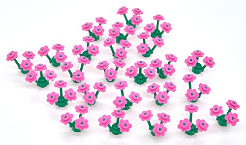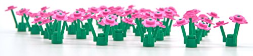 -. Feature : Dark Pink L.E.G.O Flowers / 25x Green Grass/Plant Stems / 75x Dark Pink Flower Petals