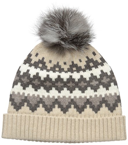 (Sofia Cashmere)/Accessories/Hats/DIRECT FROM USA/Sofia Cashmere Women's 100% Cashmere Graphic Fairisle Hat with Fox Fur Pom