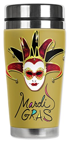 Mugzie 897-MAX "Mardi Gras" Stainless Steel Travel Mug with Insulated Wetsuit Cover, 20 oz, Black